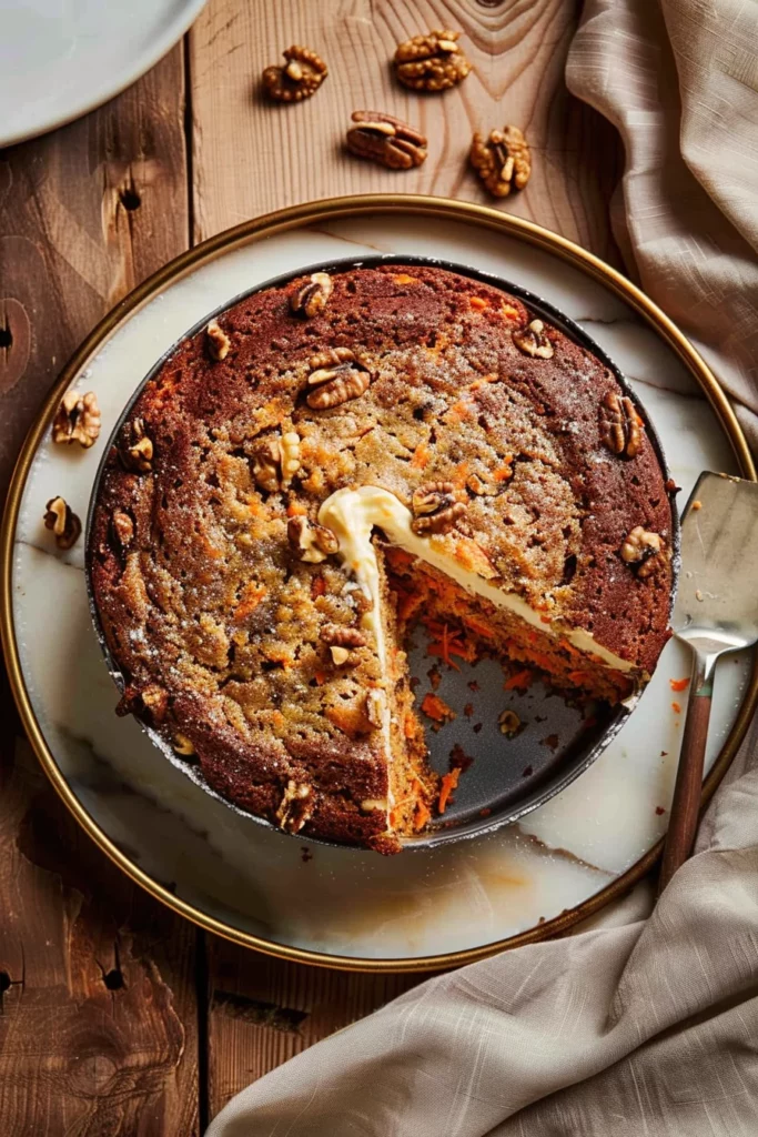 Once your American carrot cake has cooled completely, it’s time to serve. A classic presentation includes slicing the cake into generous wedges and serving on a platter, allowing the vibrant orange of the carrots to peek through. If you’re hosting a gathering, consider decorating the cake with additional walnuts or a sprinkle of cinnamon for a touch of elegance.