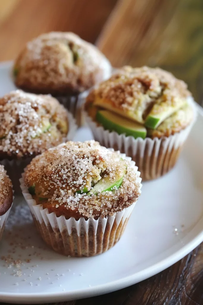 Present your Apple Cinnamon Zucchini Muffins on a rustic wooden board or colorful platter, highlighting their artisanal charm. Garnish with a sprinkle of additional cinnamon or a light dusting of powdered sugar for an elegant touch.
