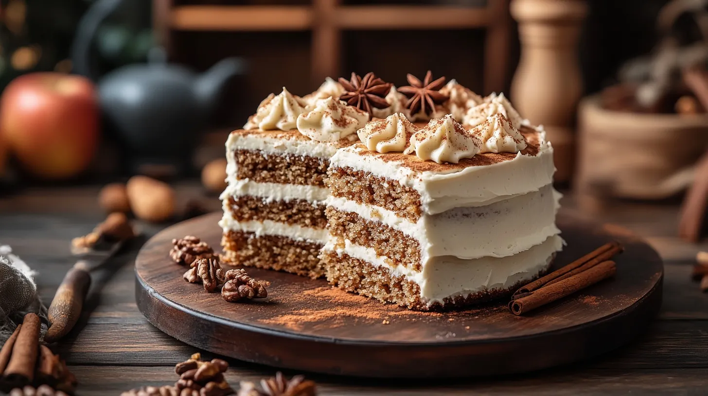 Once the cake is completely cool, spread the frosting evenly over the top (and sides if using round pans). For a decorative touch, sprinkle with a light dusting of cinnamon or add chopped nuts around the edges.