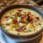 A comforting bowl of bacon potato soup that blends crispy bacon and tender potatoes into a creamy finish, perfect for cozy meals.