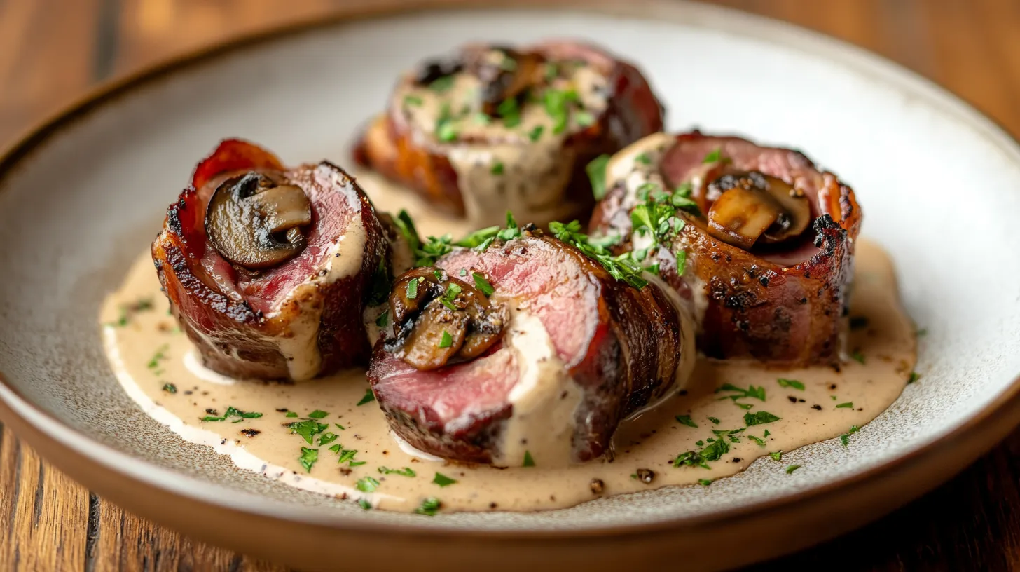 This Bacon-Wrapped Venison Backstrap with Mushroom Cream Sauce transforms an already special cut of meat into an unforgettable dining experience. The combination of tender venison, crispy bacon, and rich mushroom sauce creates a harmony of flavors that honors the wild game while making it approachable for any palate.