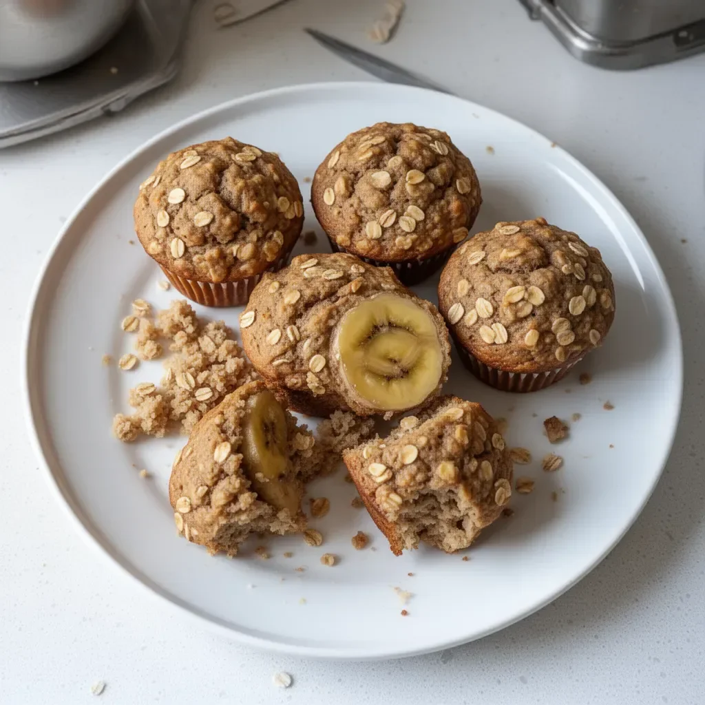 Delightful banana oatmeal muffins, perfect for breakfast or a snack, made with ripe bananas and hearty oats.