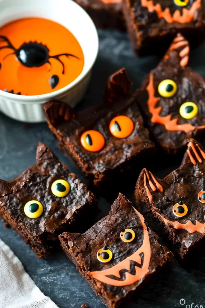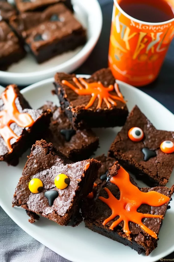 - Get creative with designs using orange or red frosting to personalize your spooky brownie bites.