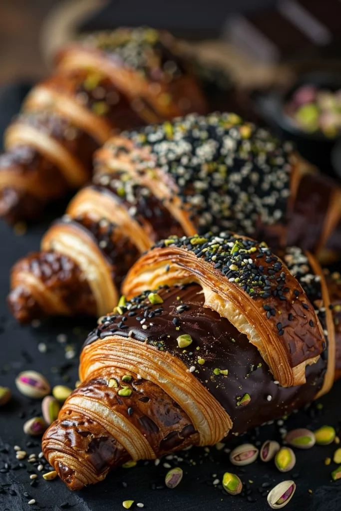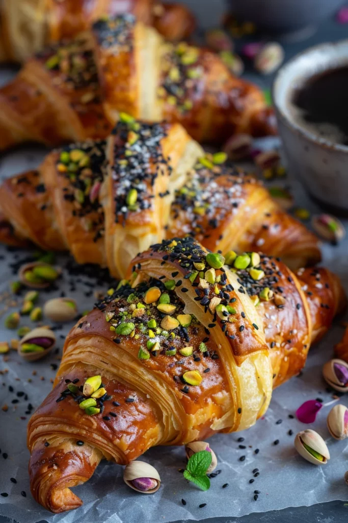 Keywords: black pistachio croissant, flaky pastry, nutty filling, homemade dough, baked perfection, savory breakfast