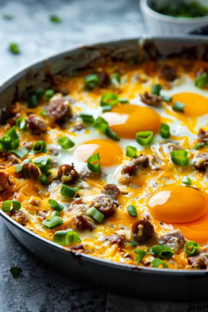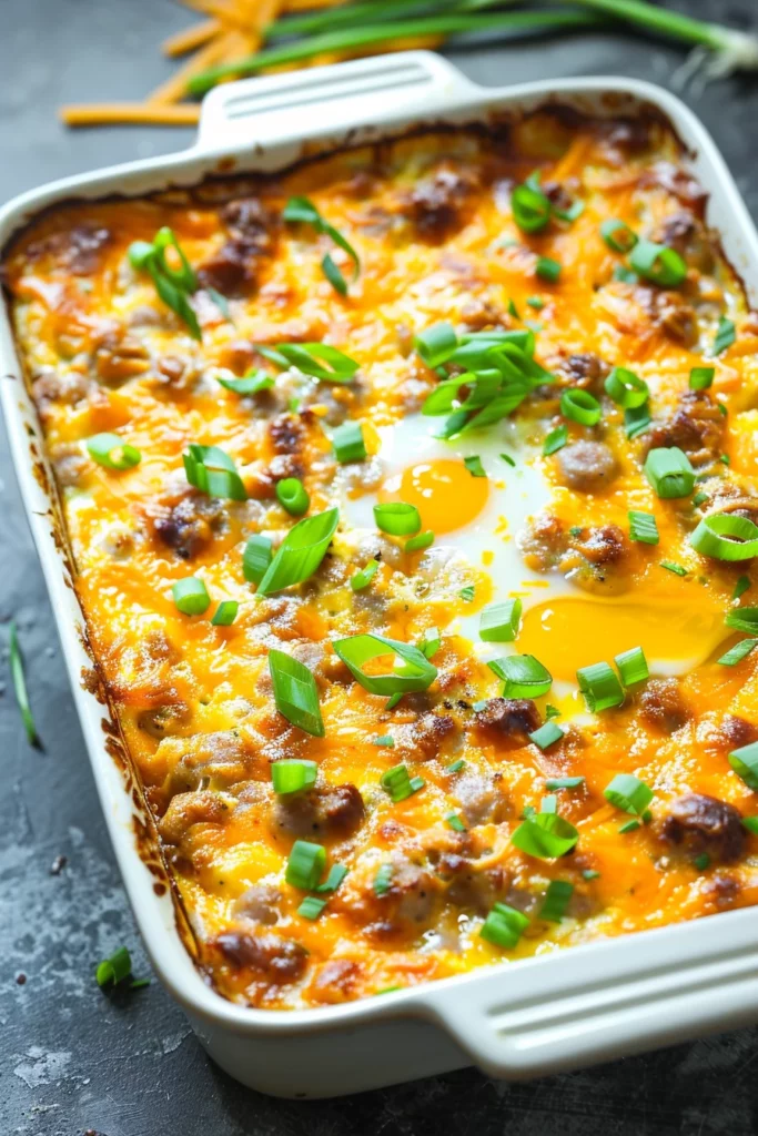 Presentation enhances the enjoyment of your breakfast casserole with eggs and sausage. Slice the casserole into even portions and garnish with additional green onions for a pop of color. Serve it alongside fresh fruit or a simple salad for a well-rounded meal.