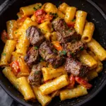 6. Return the steak to the skillet and add the cooked rigatoni. Toss to combine and heat through.