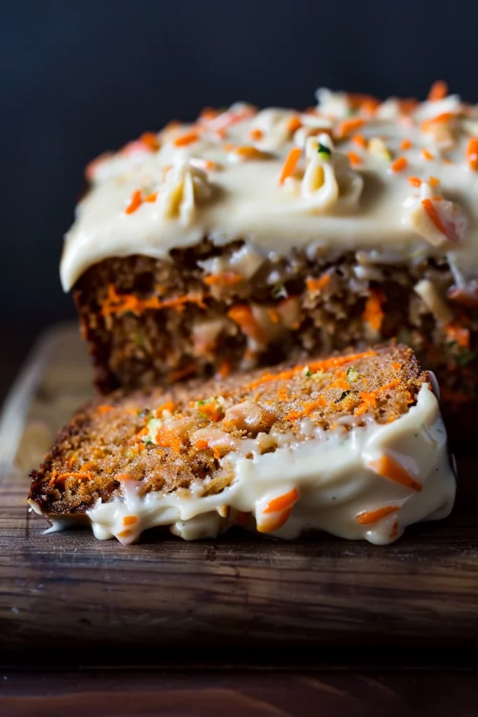 Once your carrot apple zucchini bread is frosted, slice and serve it at room temperature for the best flavor. Present the slices on a decorative platter or cake stand to elevate your presentation. This bread makes a beautiful centerpiece for any brunch or gathering, enticing guests with its inviting aroma and vibrant appearance.