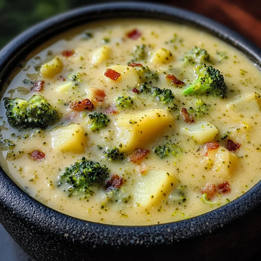 A comforting and creamy soup made with cheddar cheese, fresh broccoli, and russet potatoes, perfect for chilly evenings and family gatherings.