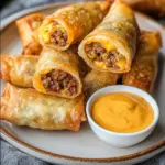 A fun and crispy take on traditional cheeseburgers, wrapped in egg roll wrappers and fried to perfection.