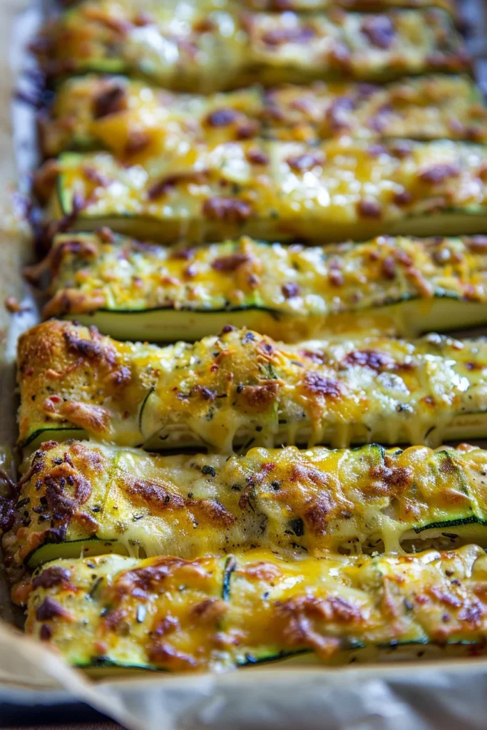 When the Cheesy Zucchini Breadsticks are hot out of the oven, cut them into pieces and serve immediately. The combination of crispy edges and gooey cheese is best enjoyed fresh. Arrange them on a platter for an inviting presentation.