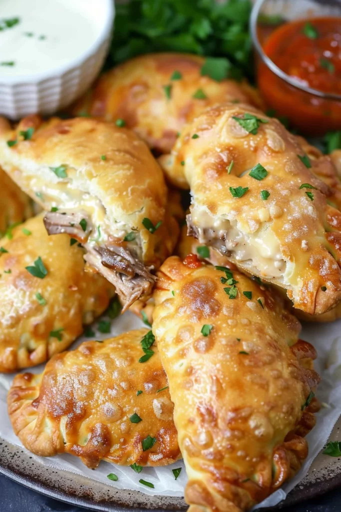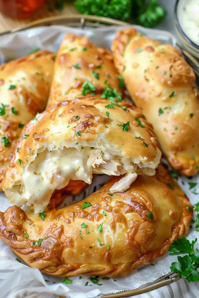 Presentation plays a crucial role in enhancing the dining experience. Serve your Chicken Alfredo Air Fryer Calzones hot and fresh from the air fryer. Arrange them on a platter and brush one last time with the parsley olive oil for a glossy finish. This step not only adds flavor but also makes the calzones visually appealing.