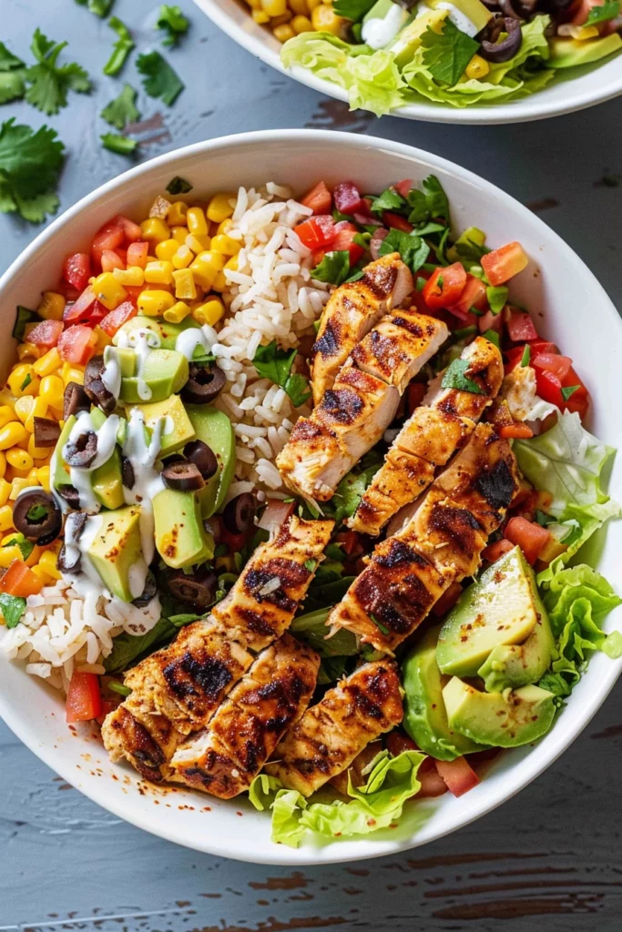 Presentation is key when it comes to serving Chicken Burrito Bowls. Use a wide, shallow bowl to showcase the vibrant colors and textures of the ingredients. Start with a base layer of rice and lettuce, then artfully arrange the chicken and other toppings.