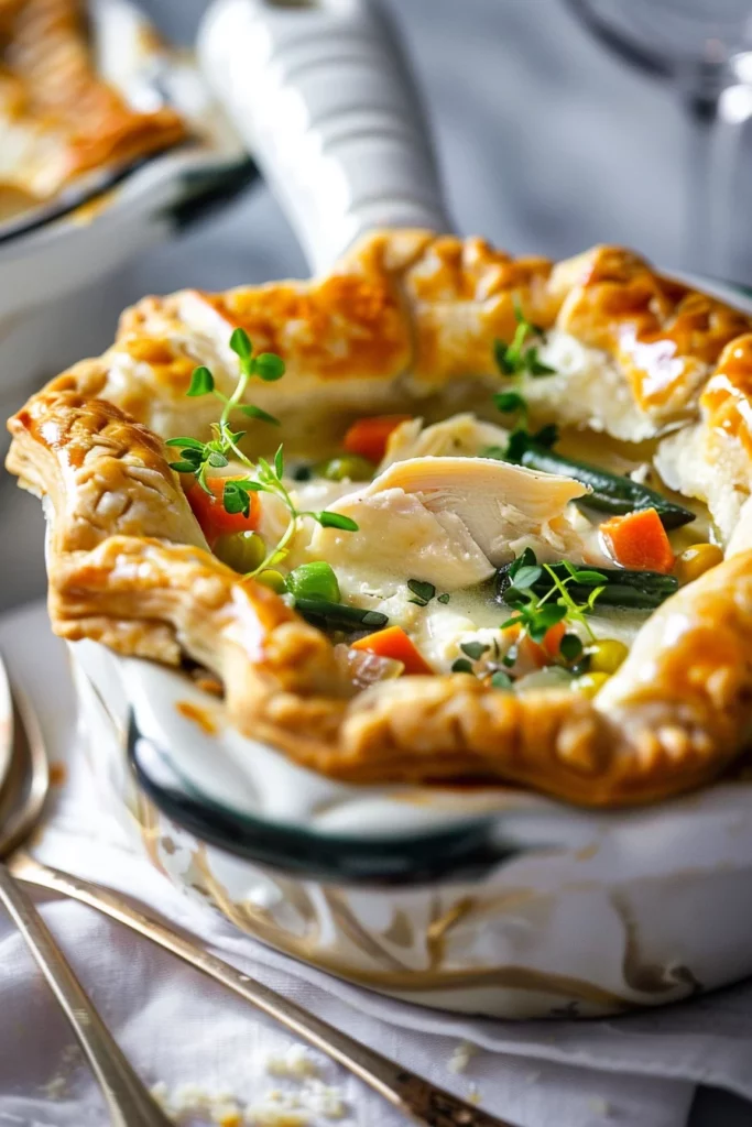 Once your chicken pot pie is ready, presentation is key. Allow it to rest before slicing, ensuring clean, neat pieces. Serve it alongside a simple green salad or steamed vegetables for a balanced meal that both satisfies and delights.