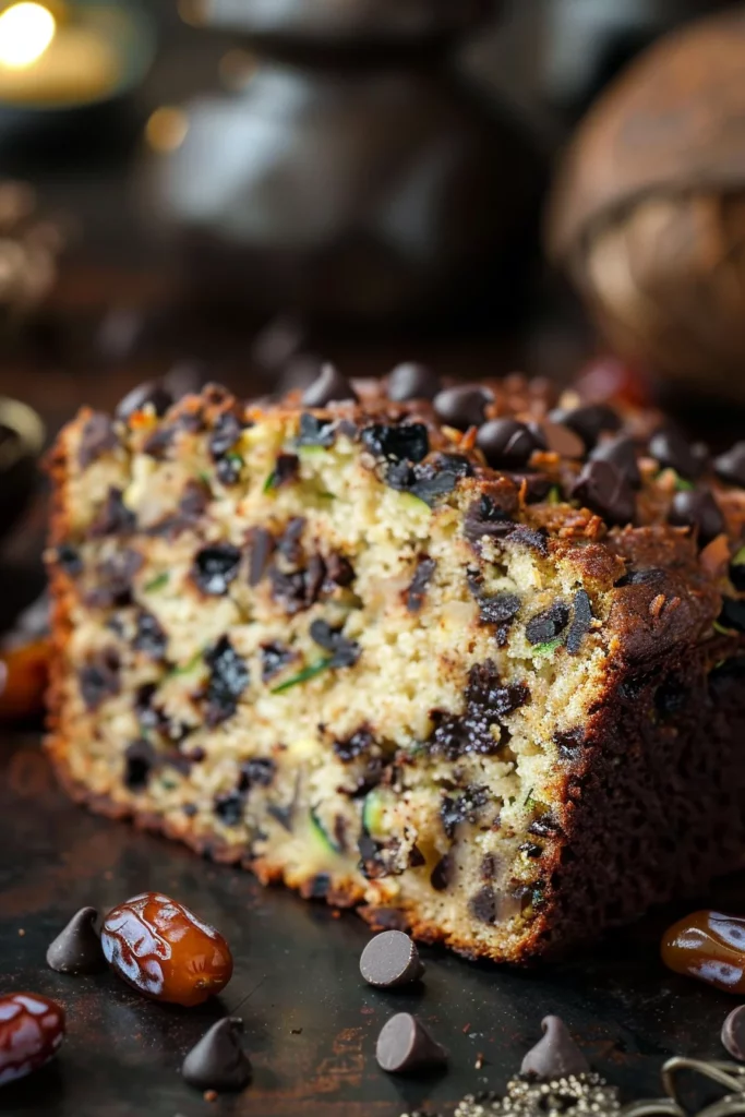 The technique for this bread is simple yet effective. After combining the wet and dry ingredients, gently fold in the grated zucchini, mini chocolate chips, and dried dates. These additions are what give the bread its unique texture and flavor. The zucchini should be finely grated to ensure even distribution throughout the batter, enhancing the bread’s moistness.