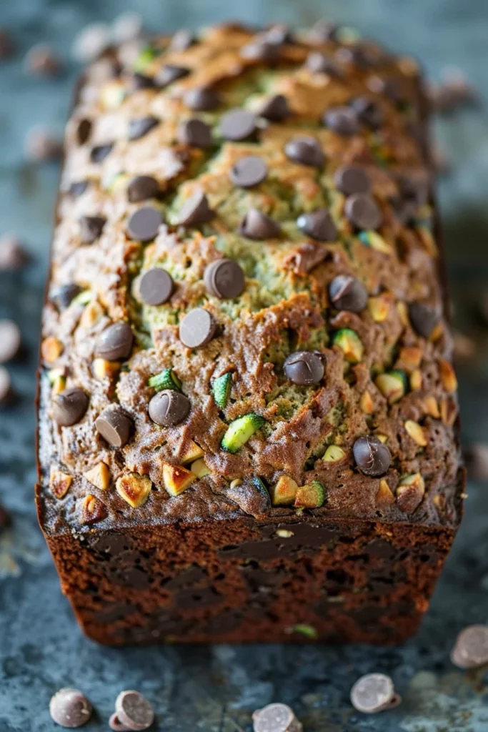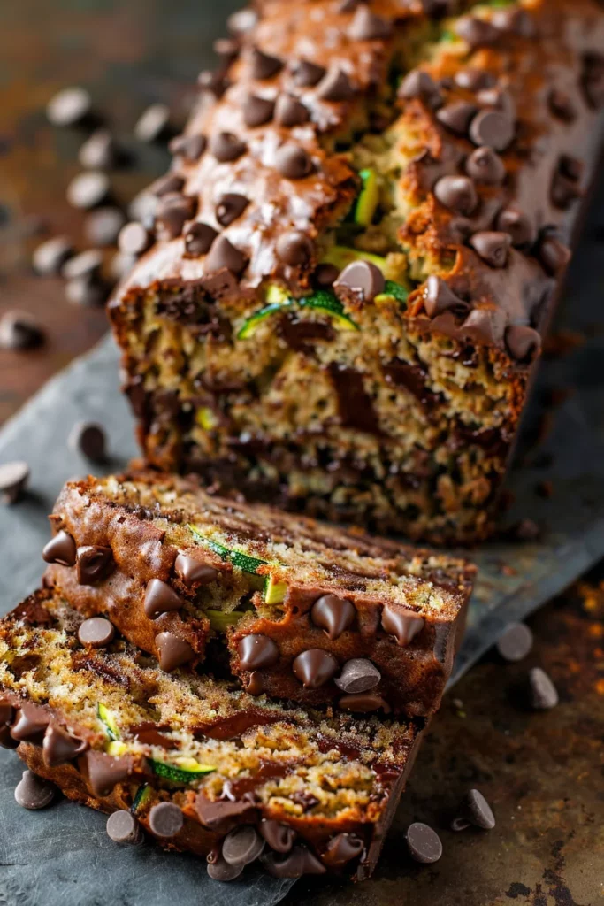 Keywords: 1. Zucchini bread recipe, 2. Chocolate chip bread, 3. Healthy dessert option, 4. Baking with zucchini, 5. Moist zucchini loaf, 6. Homemade sweet bread