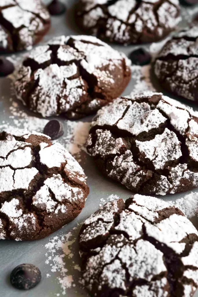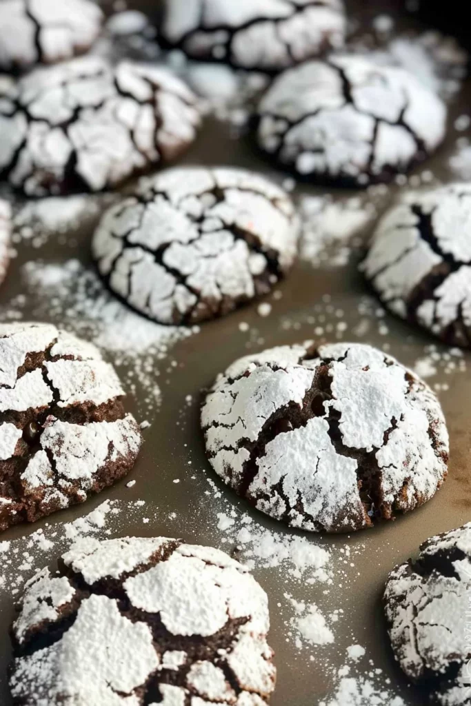 Once chilled, scoop rounded tablespoons of dough and shape them into balls. Rolling the dough balls in powdered sugar creates the iconic crinkle effect as they bake. The sugar coating not only adds sweetness but also gives the cookies their characteristic appearance, with cracks revealing the chocolatey interior.