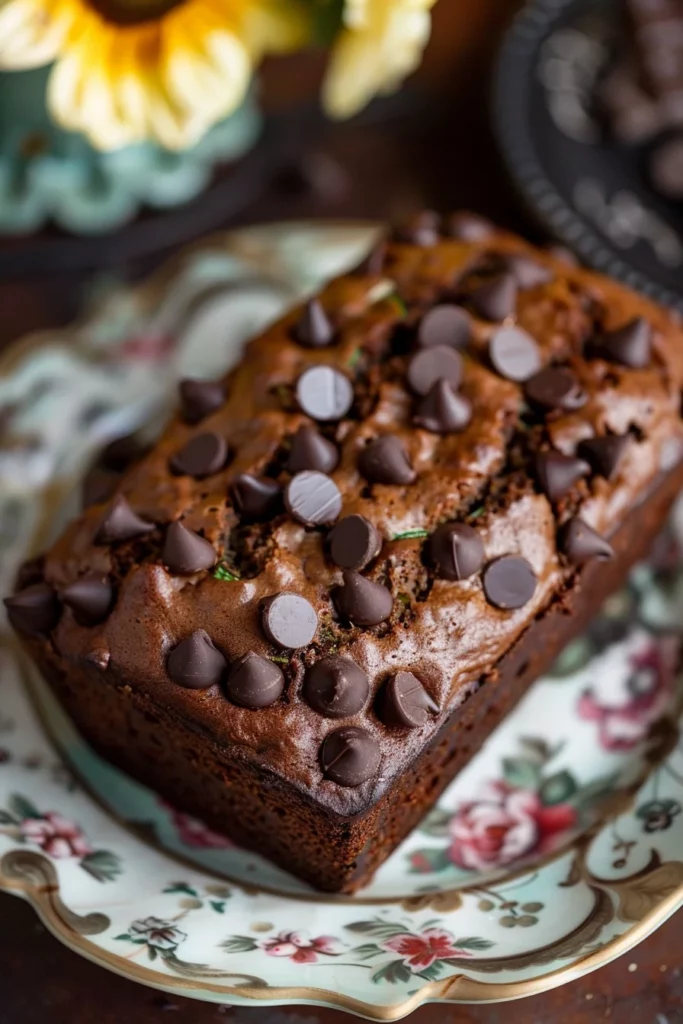 For those hosting gatherings, this bread makes a charming addition to any dessert table. Its rich, chocolatey flavor and moist texture are sure to impress guests and leave them craving more. Slice the loaf into even portions, showcasing the beautiful marbling of chocolate and zucchini with every piece.