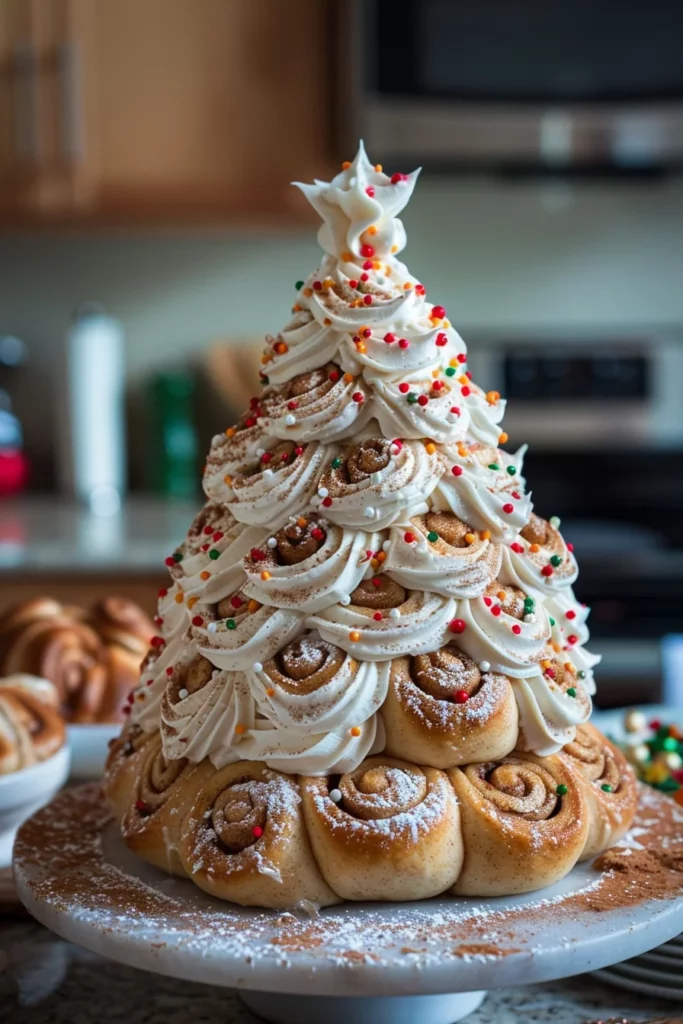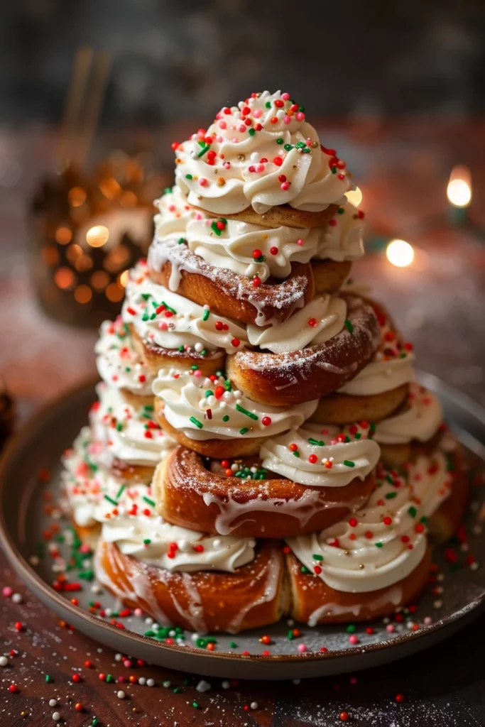 Creating a Cinnamon Roll Christmas Tree is not just about baking; it’s about crafting a centerpiece that embodies the spirit of togetherness and joy. The process of rolling, slicing, and arranging these rolls into a festive tree shape is both therapeutic and rewarding. It’s a wonderful way to connect with family, especially when everyone pitches in to decorate with holiday sprinkles.