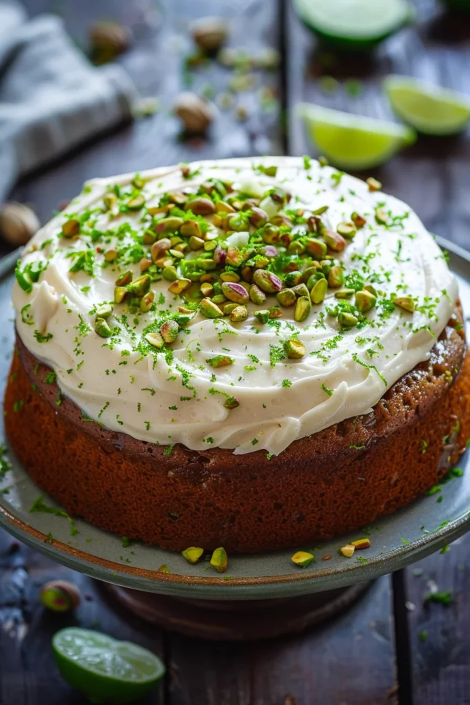 For an elegant touch, garnish each slice with a sprinkle of lime zest and a few chopped pistachios. This simple yet effective presentation enhances the cake’s visual appeal, making it a centerpiece that draws admiration and curiosity from everyone at the table.