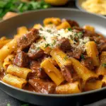 Understanding the core components helps as you prepare this dish. Rigatoni is a pasta with a hearty body, ideal for embracing robust sauces. Meanwhile, ribeye steak provides a rich, meaty flavor that shines through in each bite. Cowboy butter adds depth, blending garlic and herbs into a buttery sauce that envelopes the pasta, making it creamy and vibrant.