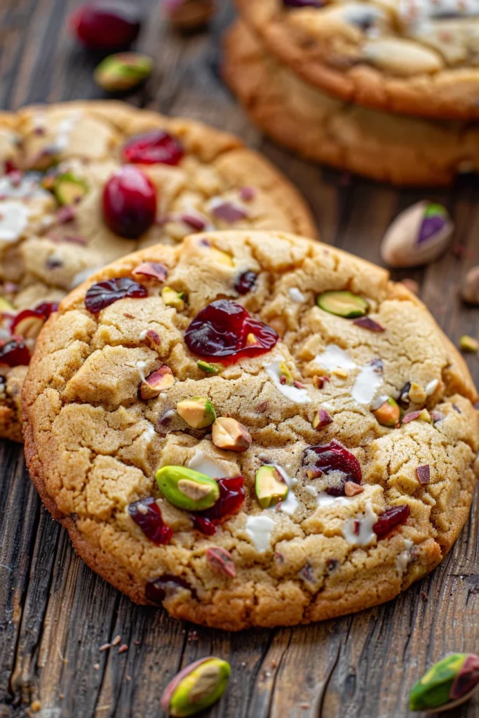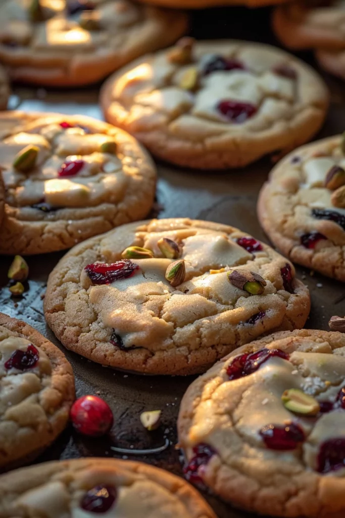 Keywords: cranberry pistachio cookies, white chocolate cookies, holiday dessert, festive cookies, homemade treats, sweet and salty cookies