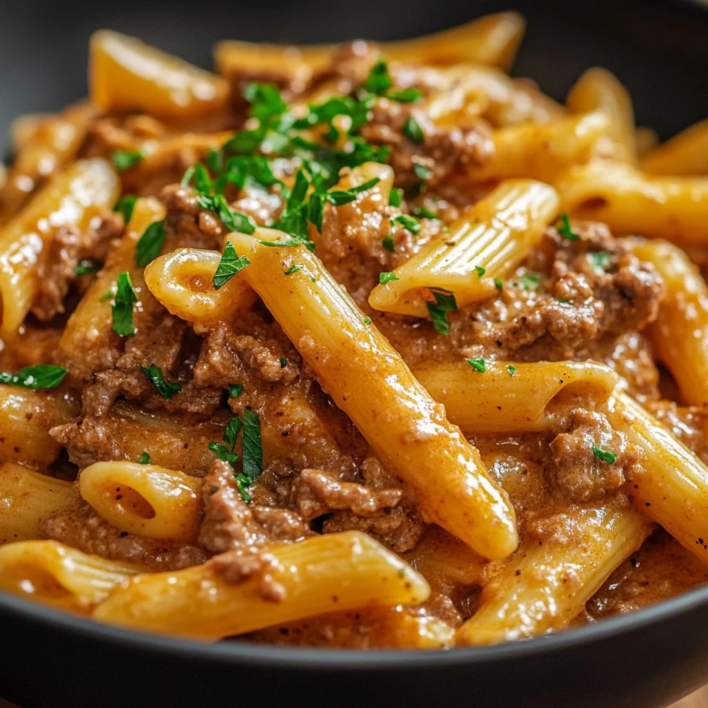 Keywords: creamy beef pasta, comfort food, pasta recipe, weeknight dinner
