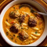 A hearty and satisfying creamy Italian meatball soup that brings family together with its rich flavors and textures.