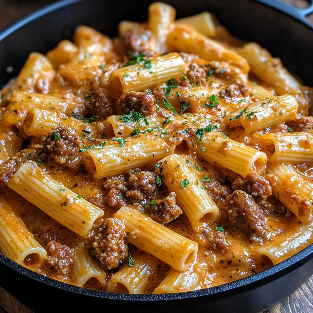 A comforting dish featuring savory Italian sausage, creamy sauce, and hearty rigatoni, perfect for family dinners and gatherings.