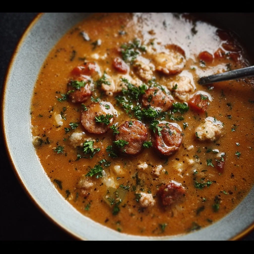 A comforting sausage soup that combines mild Italian sausage with tomatoes and cream for a rich and satisfying meal.