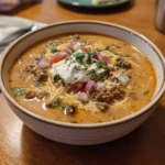 Creamy taco soup brings the best of taco night into a delightful and hearty bowl. The fusion of spices, tender beef, and creamy goodness offers a familiar yet exciting meal. Its versatility makes it perfect for any occasion, whether it’s a quiet night in or a gathering with friends. You can customize it to suit everyone’s taste, making every bowl an opportunity for personalization and joy.