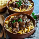 - Serve: Plate noodles, top with beef and gravy, garnish with parsley or chives if you’re feeling fancy.