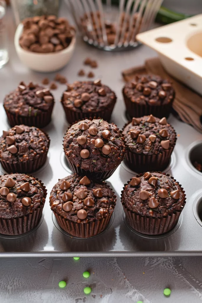Finely grated zucchini is the secret ingredient that elevates these muffins. It adds moisture without overpowering the chocolate flavor. When mixed with semisweet chocolate chips, the zucchini ensures each bite is melt-in-your-mouth delicious. For those who love an extra chocolate punch, sprinkling mini dark chocolate chips on top before baking is optional but highly recommended.