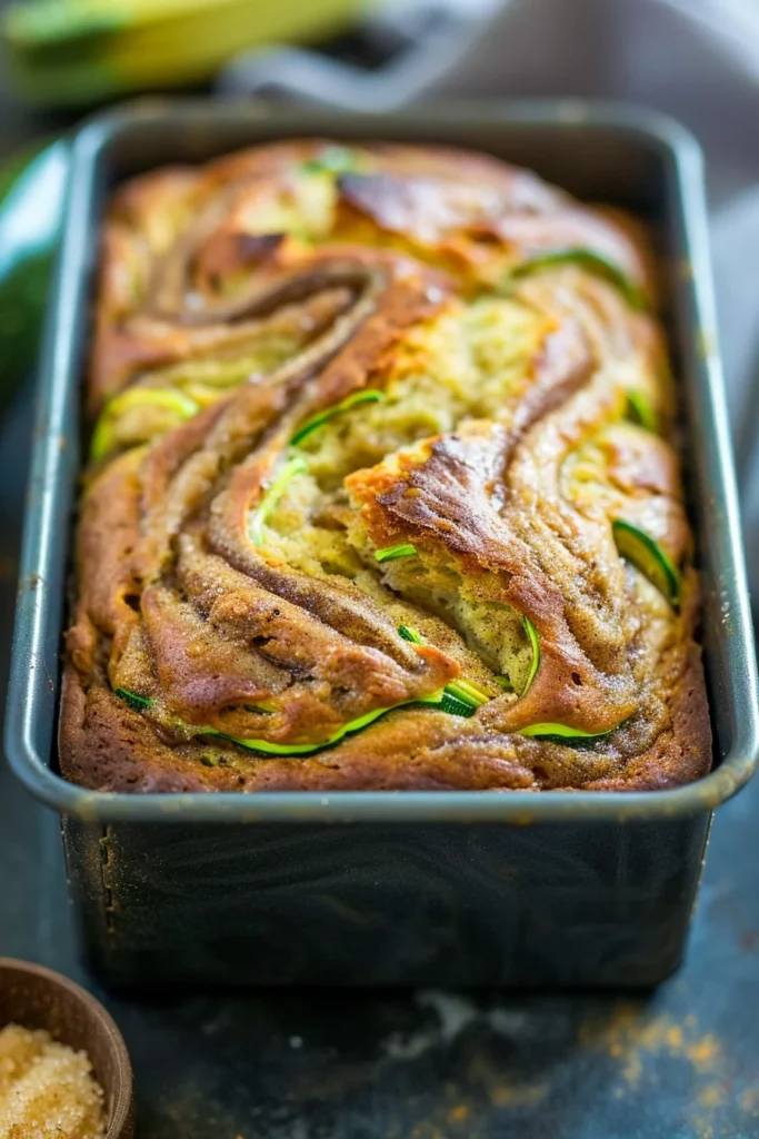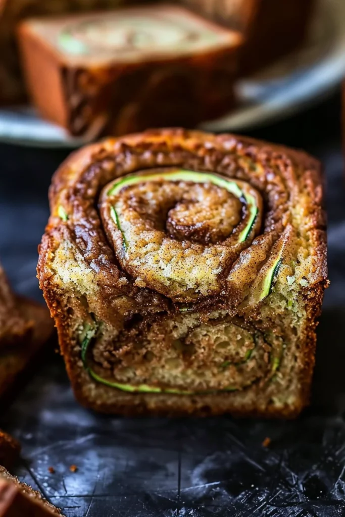 Keywords: zucchini bread, cinnamon swirl, baking recipe, moist loaf, homemade dessert