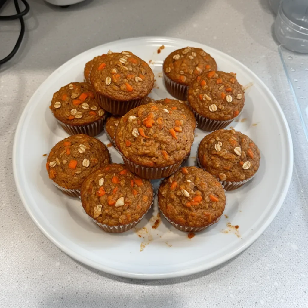 Delicious and wholesome muffins made with rolled oats and grated carrots, perfect for breakfast or snacks.