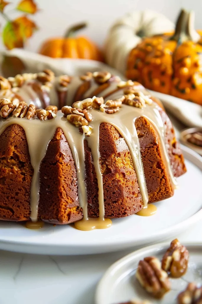Presentation is key when serving the Easy Pumpkin Bundt Cake. Place it on a cake stand to showcase its beautiful shape and drizzle the maple glaze while it’s still warm. This ensures the glaze coats the cake evenly, creating an inviting sheen that beckons everyone to take a slice.