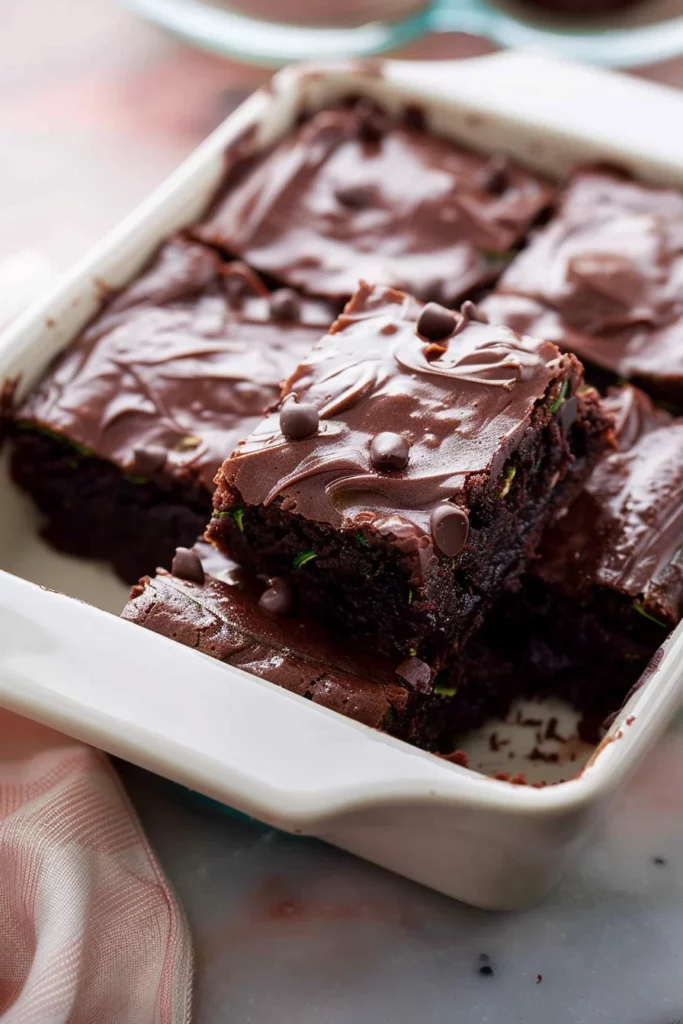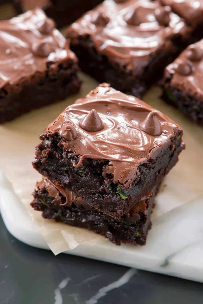 Presentation plays a key role in enjoying your effortlessly delicious zucchini brownies. Once the frosting has set, cut the brownies into neat squares for a visually appealing display. These brownies are perfect for sharing at gatherings, where their rich aroma and fudgy texture are sure to impress.