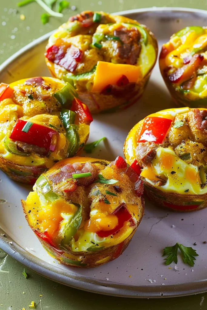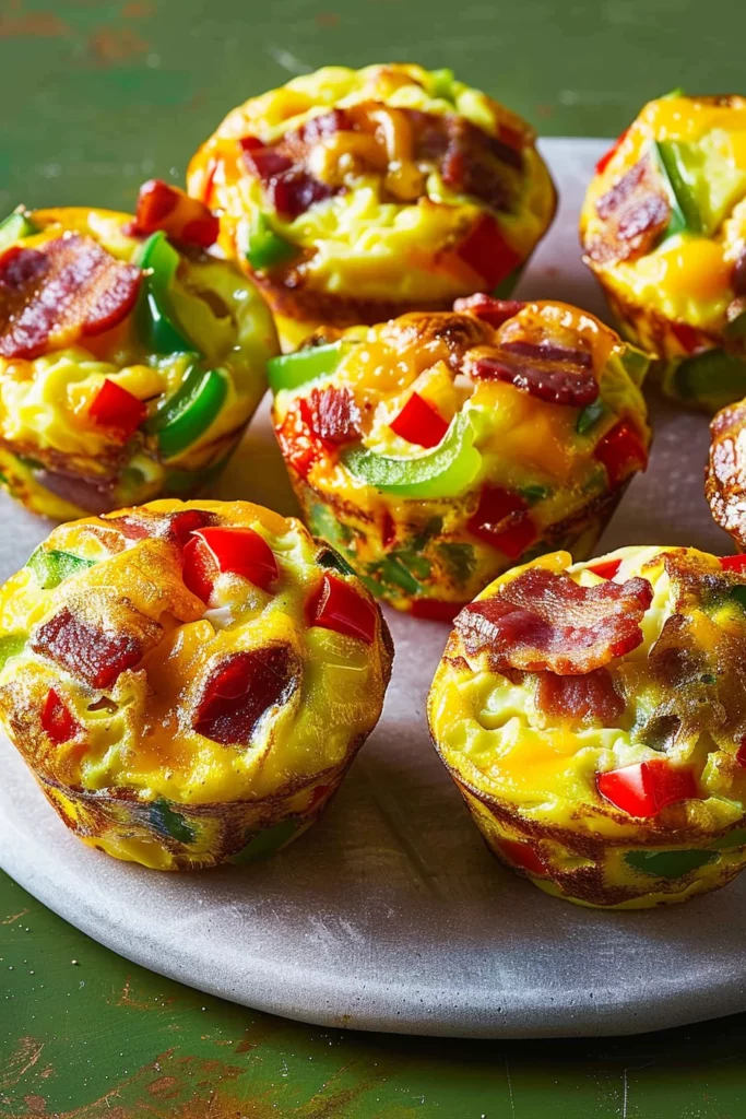Keywords: breakfast muffins, egg muffins, cheesy breakfast, bell pepper eggs, savory muffins, bacon and eggs