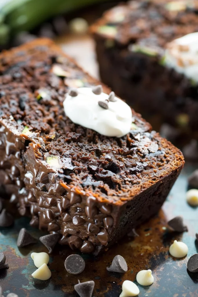 Presentation elevates the experience of enjoying extra moist chocolate zucchini bread with sour cream. Slice the loaf evenly and arrange it on a decorative platter for an inviting display. The rich, chocolatey slices contrast beautifully with fresh berries or a dollop of whipped cream.