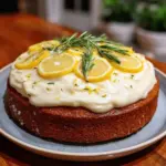 A delightful cake combining the zesty flavor of lemon with earthy rosemary, topped with a luscious lemon cream cheese frosting.