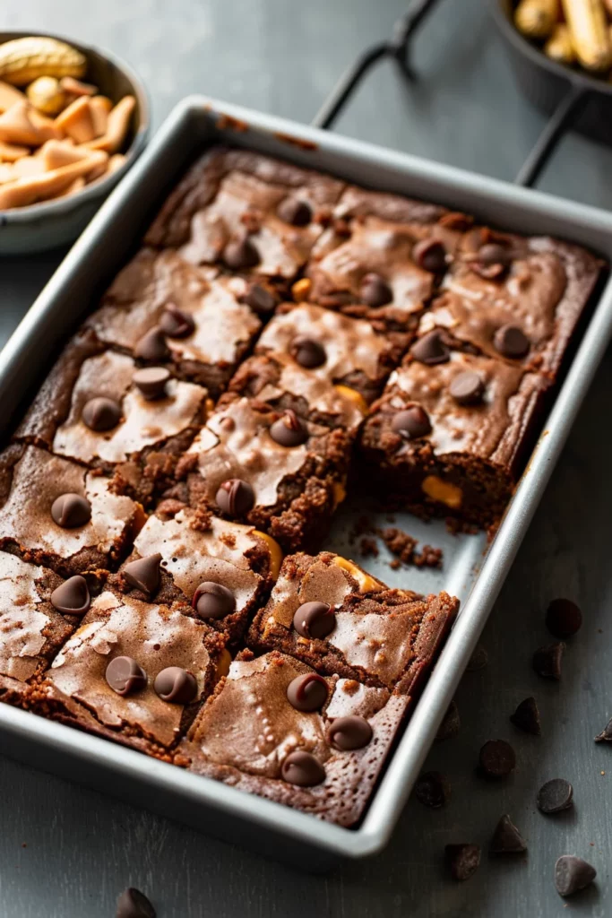 Keywords: 1. Peanut butter brownies, 2. Chocolate chip brownies, 3. Gooey centers brownies, 4. Fudgy brownies, 5. Peanut butter chocolate, 6. Brownies recipe