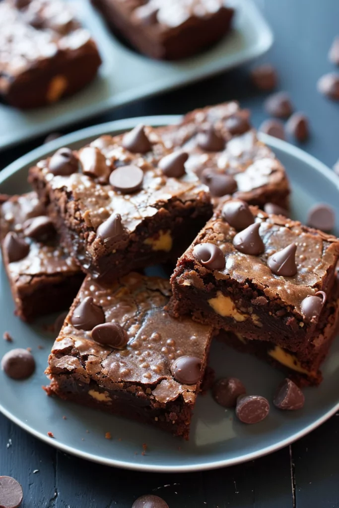 Once your Fudgy Peanut Butter Chocolate Chip Brownies With Gooey Centers are cooled, cut them into squares and serve. For an elegant presentation, dust them with a light sprinkle of powdered sugar or serve with a scoop of vanilla ice cream. This adds a contrast of textures and temperatures, enhancing the overall experience.