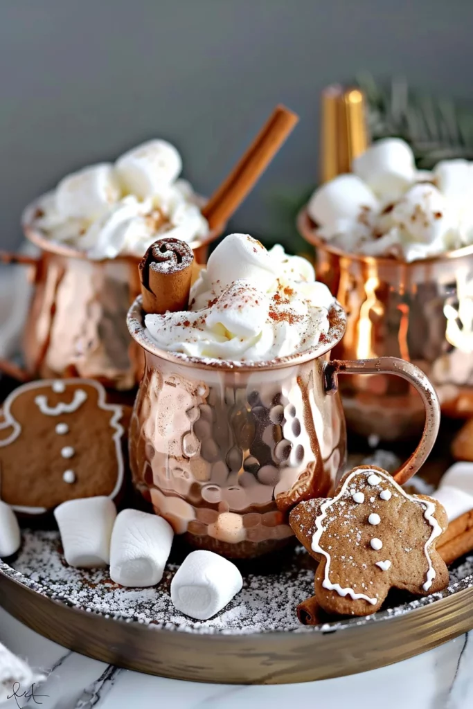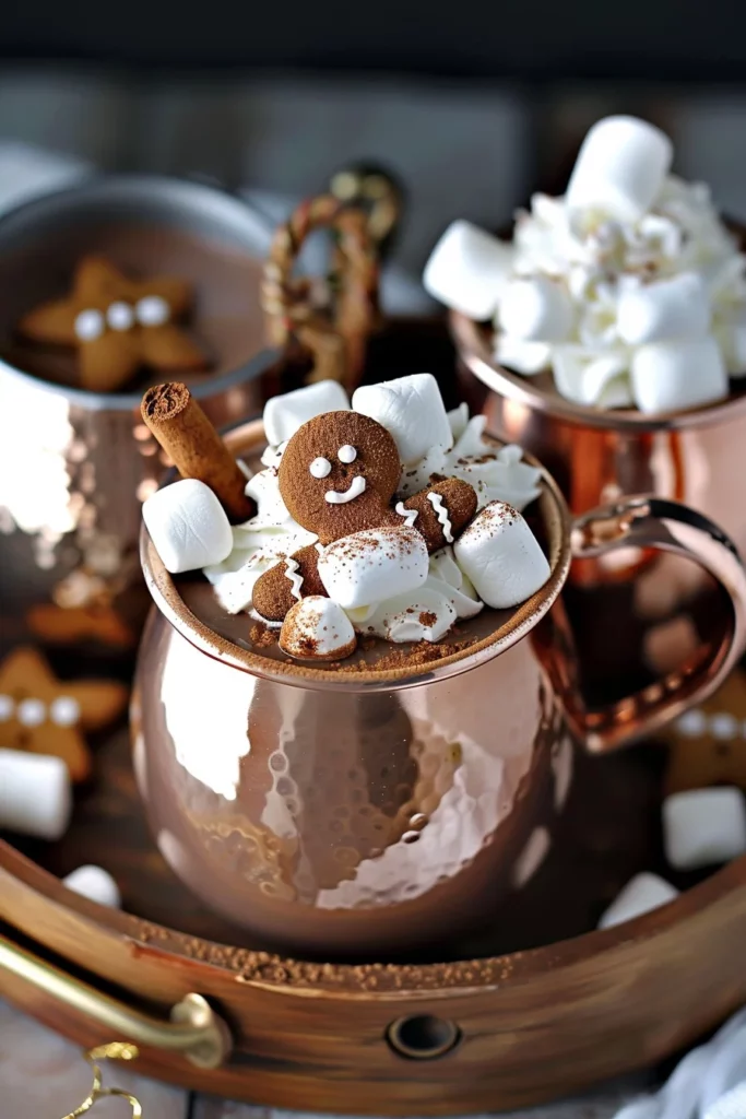 Presentation plays a crucial role in elevating the experience of enjoying gingerbread hot chocolate. Serve the beverage in festive mugs, adorned with a cinnamon stick and a mini gingerbread man for dunking. This whimsical touch adds to the holiday charm and makes each cup feel special.