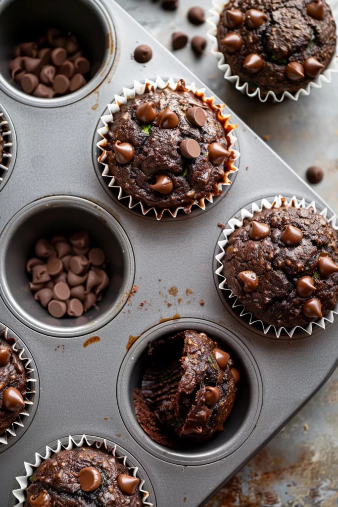 The technique for making healthy and moist chocolate zucchini muffins involves a careful balance of mixing and folding. After combining your wet and dry ingredients, gently fold in the chocolate chips. This ensures they are evenly distributed throughout the batter, providing bursts of chocolatey goodness in every bite.