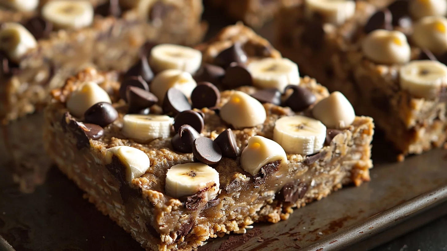 Indulge in our irresistible Healthy Greek Yogurt Chocolate Chip Cookie Bars recipe with banana and oats. Learn how to bake these delicious treats today!