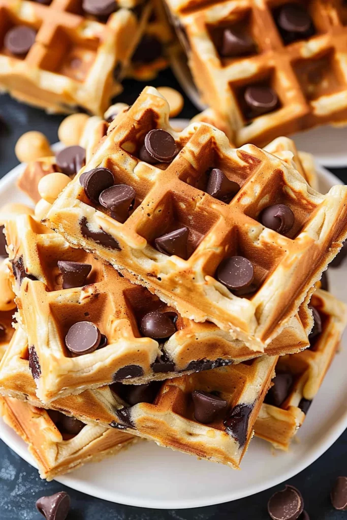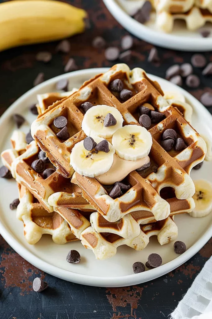 Keywords: banana waffles, chocolate chip, peanut butter, breakfast recipe, gluten-free option