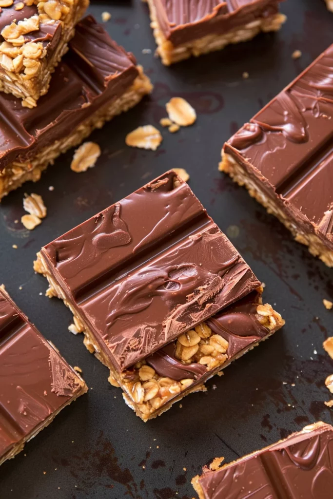 The chocolate topping is the final touch that elevates these bars. Ensure it’s spread evenly across the surface for a professional-looking finish. This attention to detail makes your Healthy No Bake Peanut Butter Chocolate Protein Bars With Oat Crust truly shine.