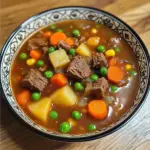 In a very large pot, heat 1 tablespoon of oil. Add chopped carrots and the frozen seasoning mix. Sauté until tender, creating a foundation of flavor. Next, fold in the shredded beef, chopped potatoes, frozen peas, green beans, corn, the remaining beef broth, and tomato soup.