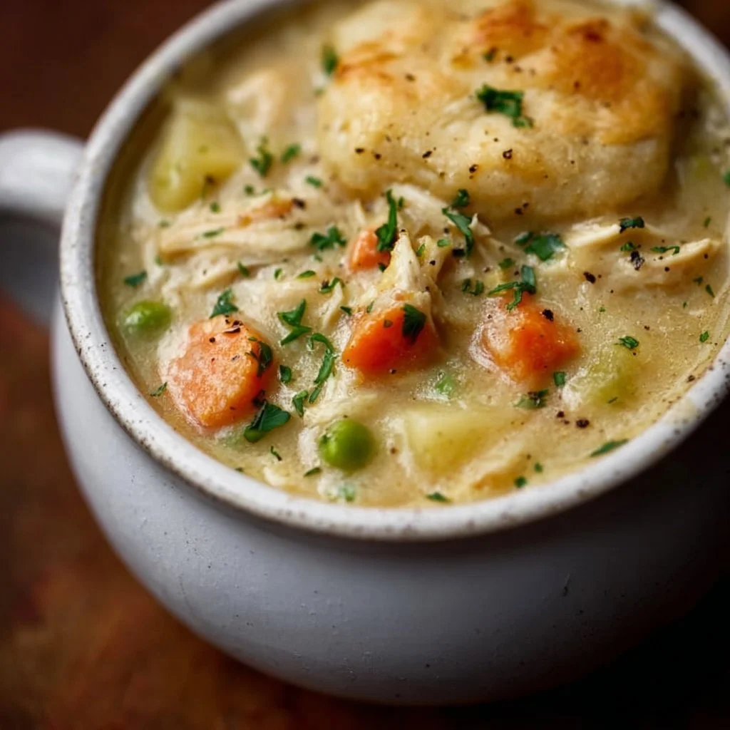 A comforting and nutritious chicken pot pie soup rich in flavors and packed with protein, perfect for cozy nights.