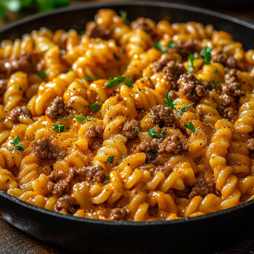 - Combine the cooked pasta with the beef mixture in the skillet. Toss until well combined.