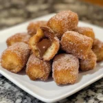 Homemade churro bites filled with Nutella, coated in cinnamon sugar, and perfect for sharing at any gathering.